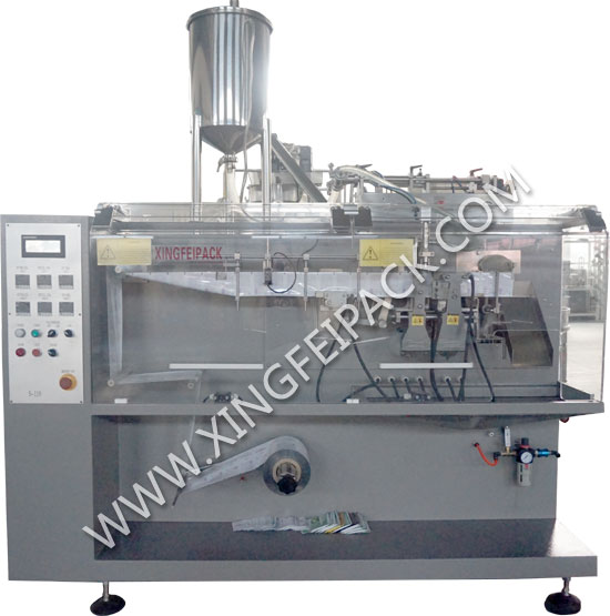 特點:本機采用電腦控制,具有生產效率高,適應性強,可靠性穩定性高,包裝的產品外觀挺直美觀封口處不沾液,不沾粉,牢固不破,封口強度高等特點,是食品,制藥,日化,農藥和飼料等行業理想的包裝機械。
